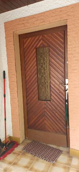 - Türen (außen): Glasfüllung, Holz